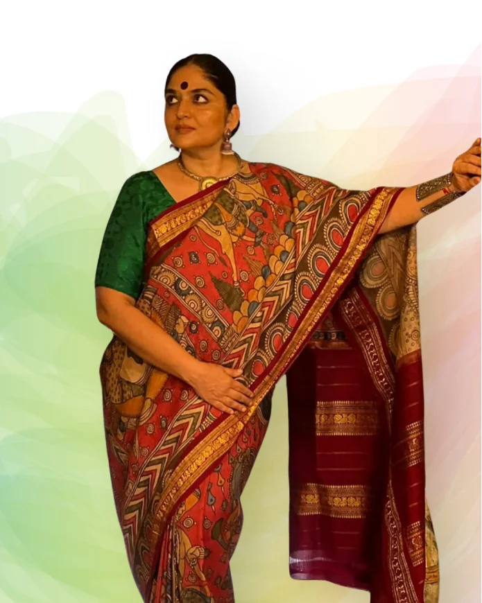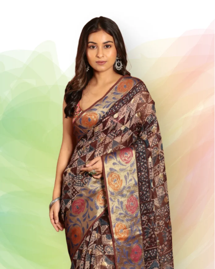 Florals On Tissue Silk Pen Kalamkari Saree - 012