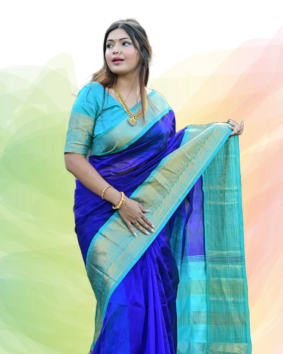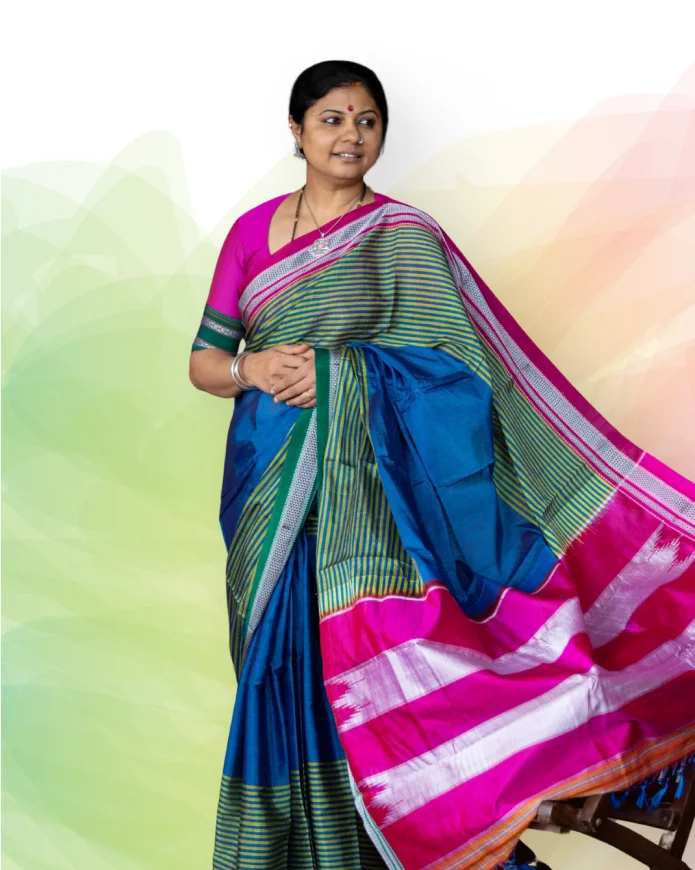 Pure Handloom Korvai Saree | Teal Blue and Golden Yellow