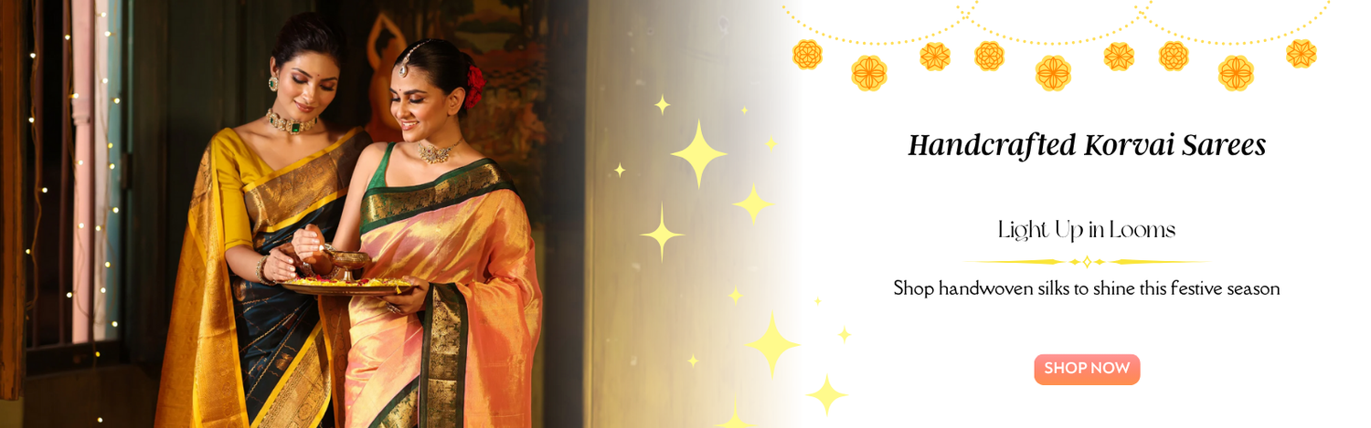 Pure Handloom Korvai Saree | Checks Green, Maroon, Mustard Gold
