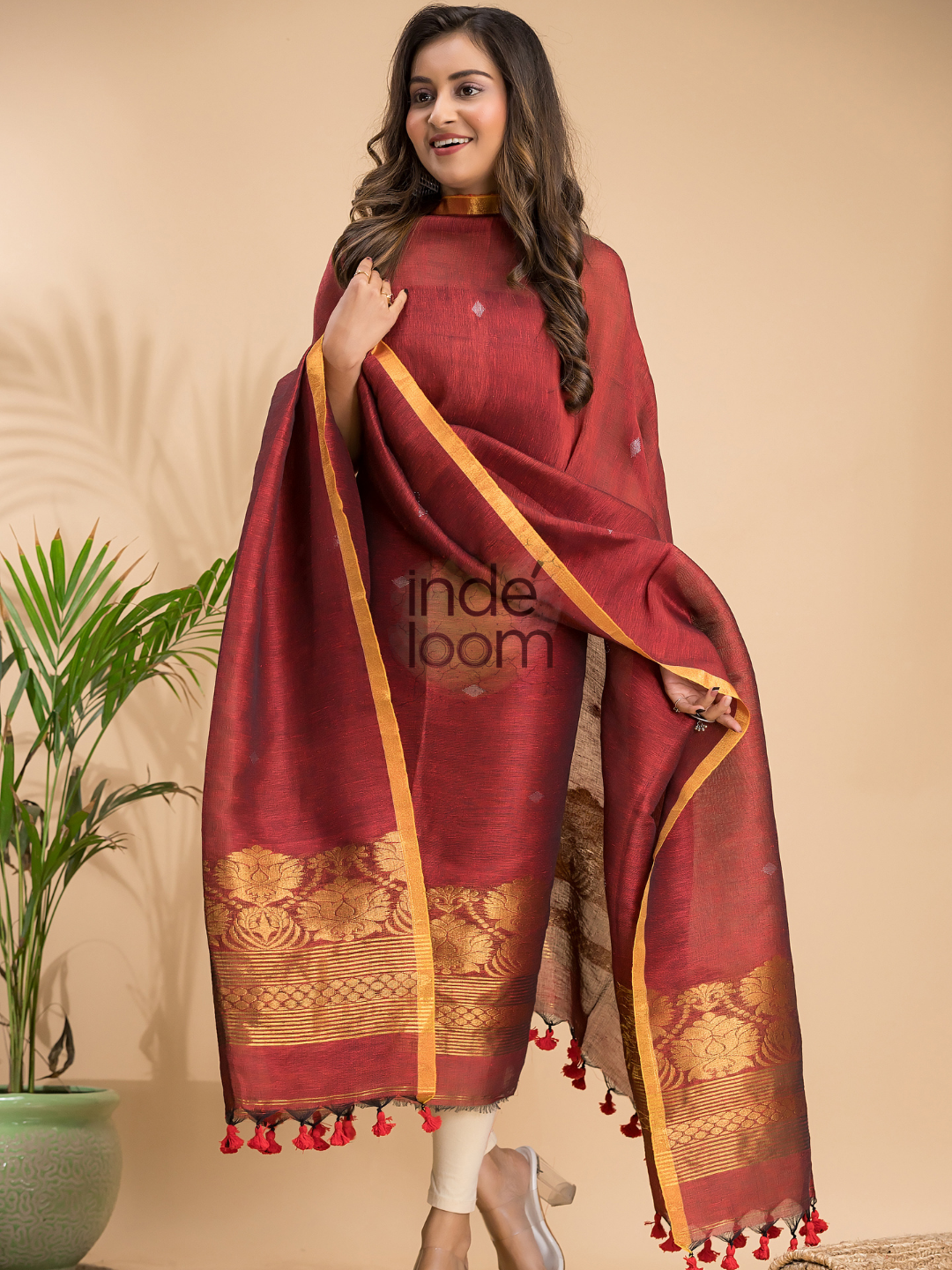 Cherry Red Cotton Linen 2-Piece Set Kurti & Dupatta (UNSTITCHED) - 023