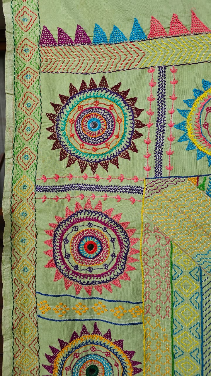 Mercerised cotton Ilkal Lambani Saree With Pastel Green - 011