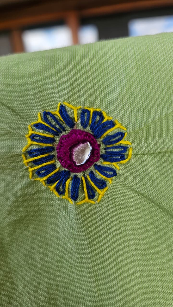 • Pure Ilkal handloom fabric • Traditional Lambani hand embroidery • Intricate mirror work with vibrant thread detailing • Rich contrast border and elegant pallu • Lightweight, breathable & comfortable