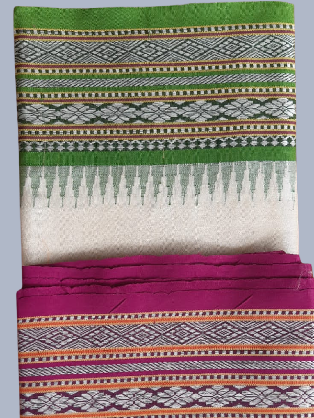 Green and Pink Handloom Vidarbha Tussar Silk Saree with Multicolor Contrast Border -069