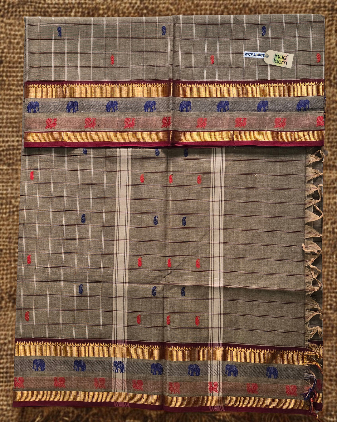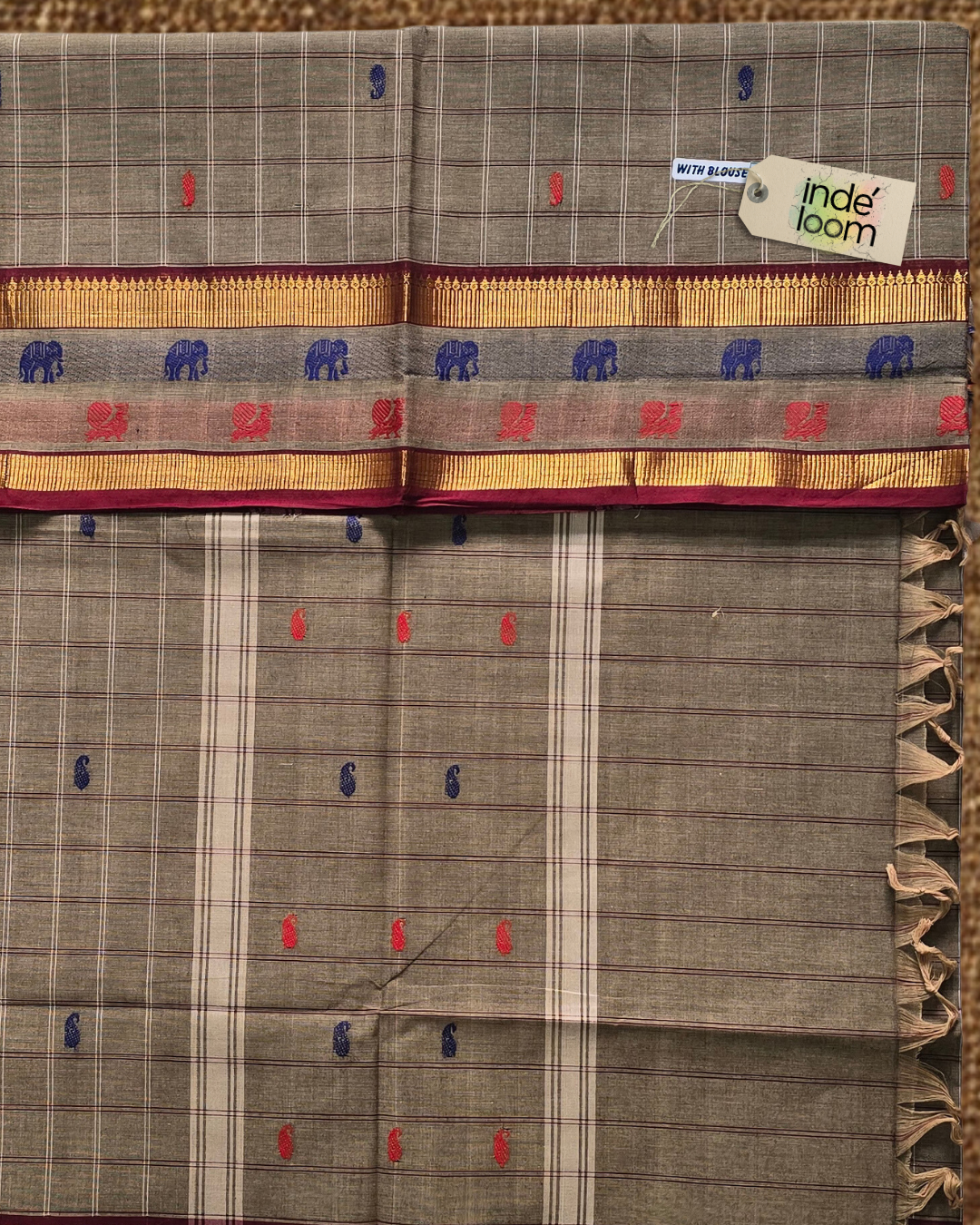 Kanchi Cotton|Dark Grey & Maroon