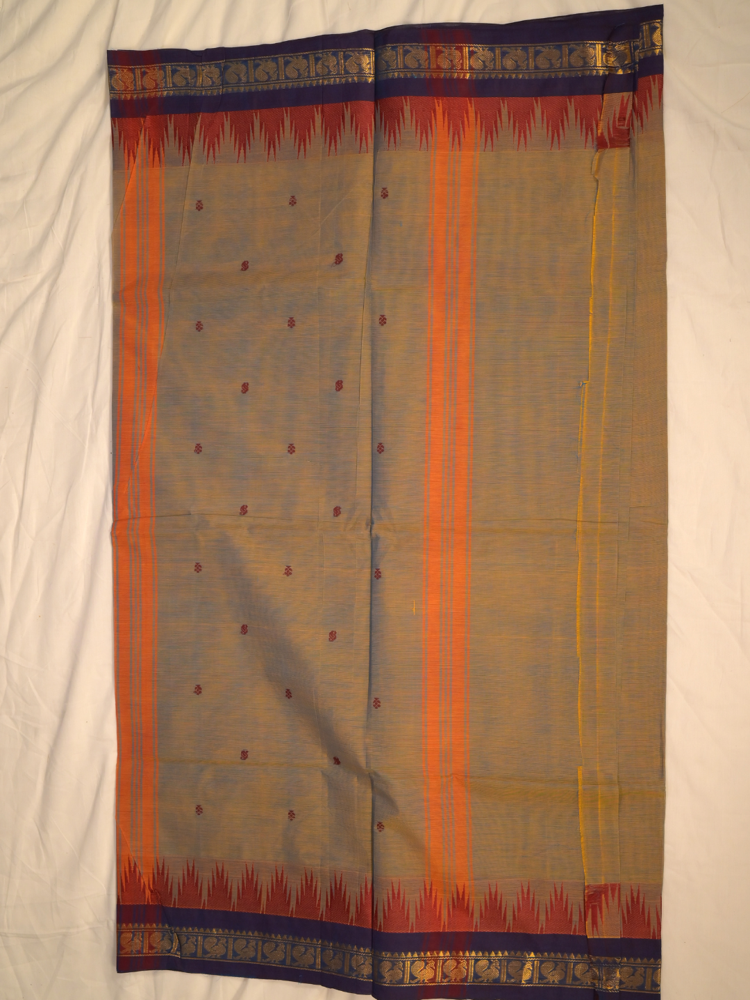 Kanchi Cotton|Dual tone Ocher Yellow & Navy Blue