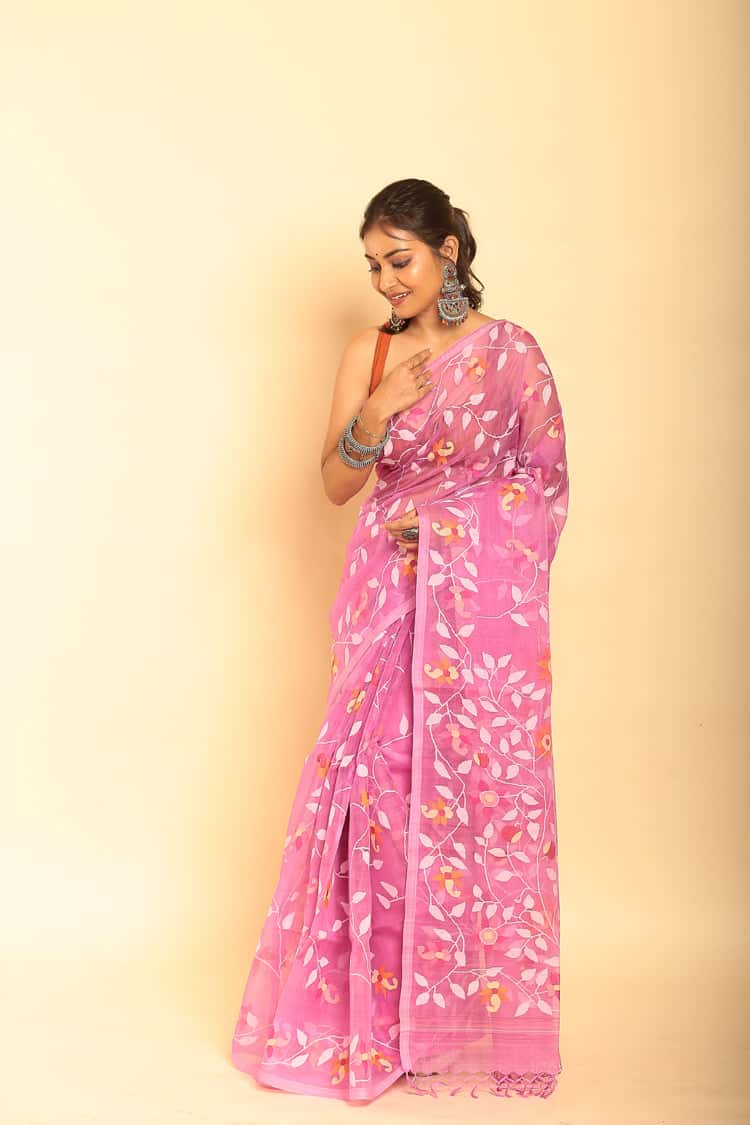 Hand Made Muslin Jamdani Saree Nadeshiko Pink - 052