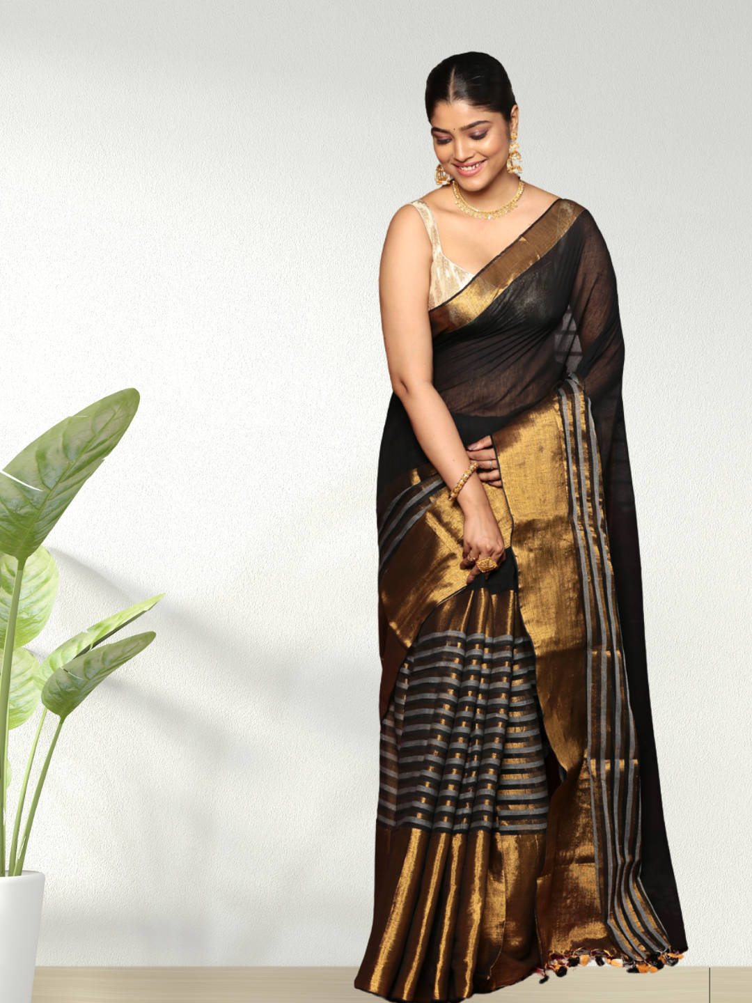 Unveil the timeless beauty encapsulated within the Tissue Silk Saree. Its delicate shimmer and feather-light texture render it a flawless option for grand occasions. Pair this saree with minimalist jewelry to accentuate its exquisite fusion of grace and luxury.