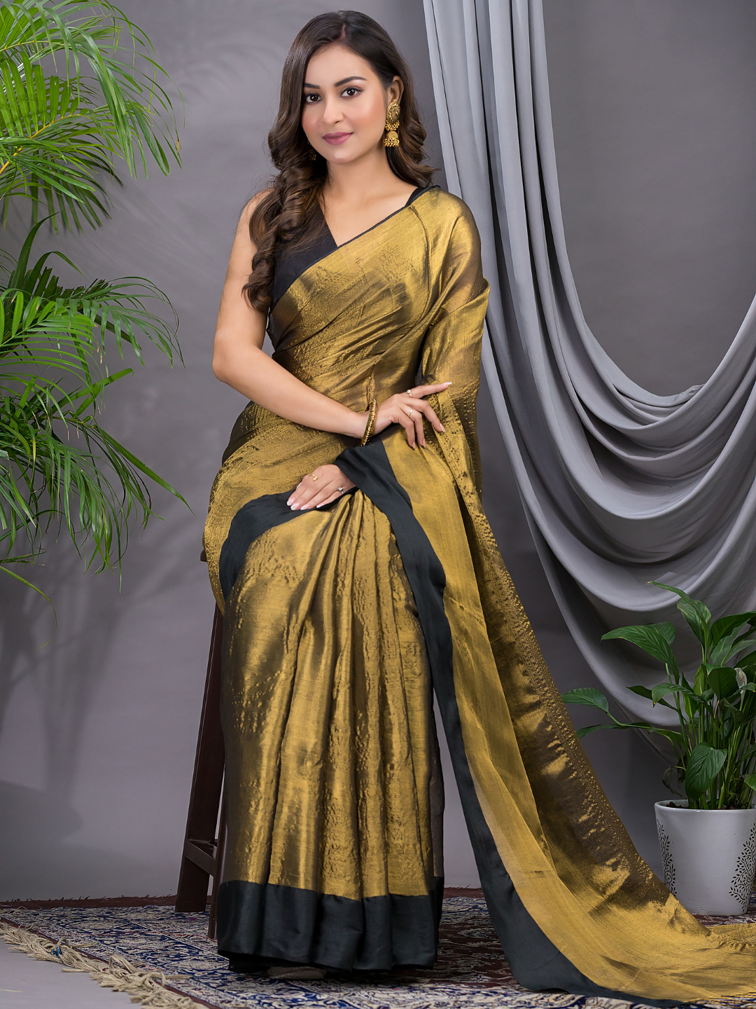 Unveil the timeless beauty encapsulated within the Tissue Silk Saree. Its delicate shimmer and feather-light texture render it a flawless option for grand occasions. Pair this saree with minimalist jewelry to accentuate its exquisite fusion of grace and luxury.